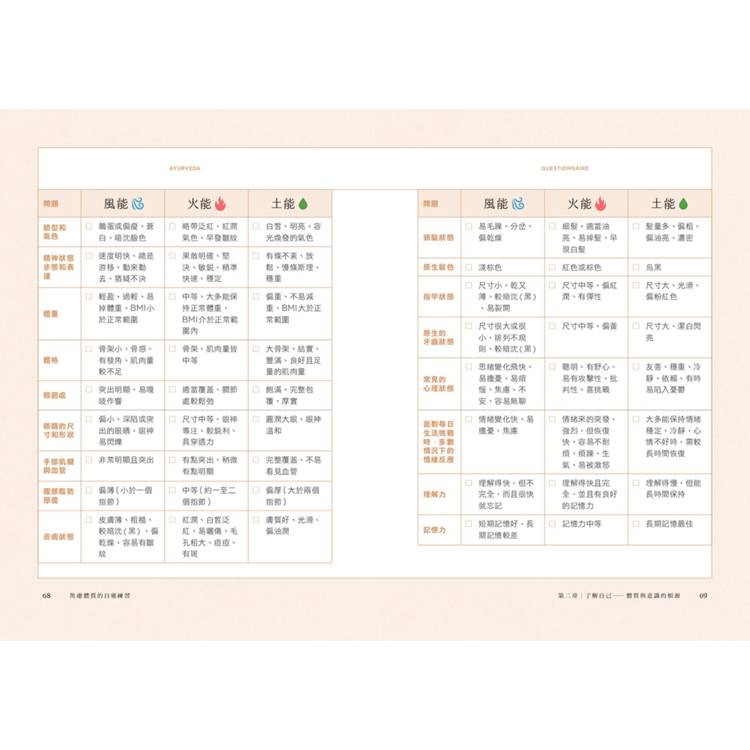 透過體質問卷,識別你是風型、火型、土型體質,亦或是雙重體質;