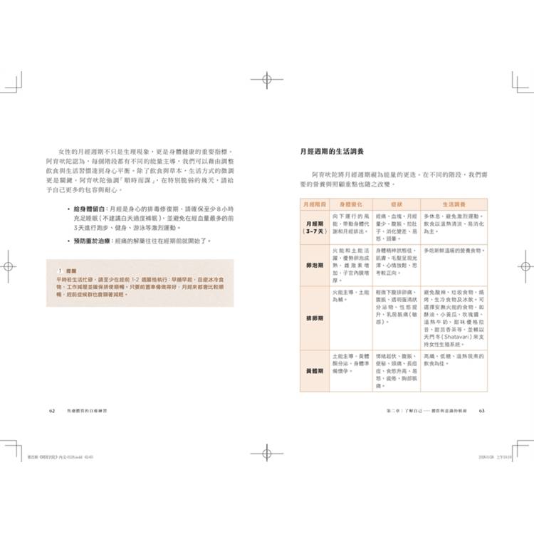 作者以自身經驗為證,從長年經期劇痛、偏頭痛、焦慮失眠,到藉由阿育吠陀重啟身心平衡,