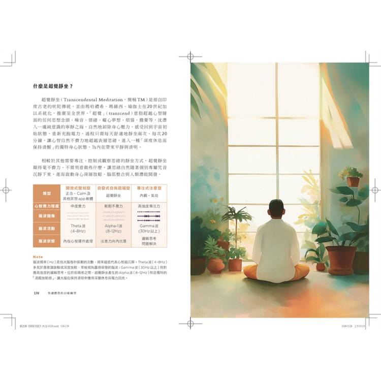 書中介紹「超覺靜坐」、日常調息與感官照護的方式,