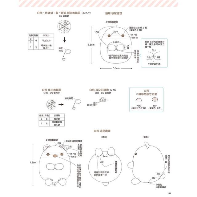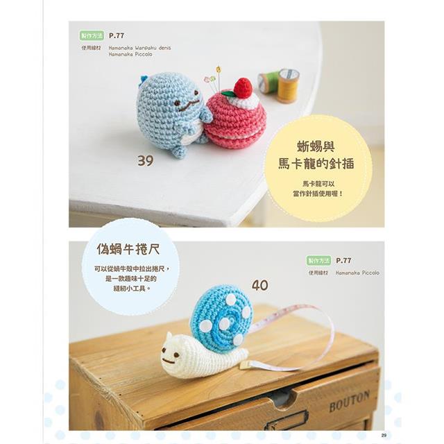 怕冷的白熊、頭上曾經有盤子的企鵝?、被吃剩的炸豬排、容易害羞的貓、嚮往成為花束的雜草,隱藏真實身分的蜥蜴與偽蝸牛……自己動手鉤織,一次滿足角落迷想要全部擁有的願望!