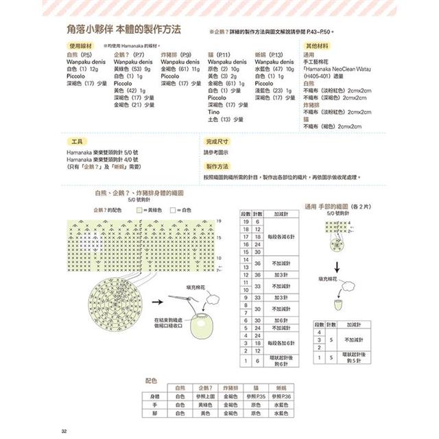 從起針、鉤織、組裝到五官刺繡完成,全程影音示範,保證一看就懂。