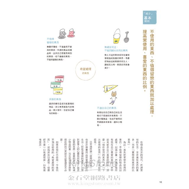 本書不談論過多繁瑣的收納技巧,只須用心體會與實踐金子老師的收納哲學,你將會發現自己身處的物理環境變得清爽了,而同樣的整理概念,也可以幫助我們釐清思緒,應用於處理任何事務,讓自己的心靈空間與時間變得自在而有餘裕!