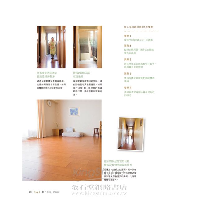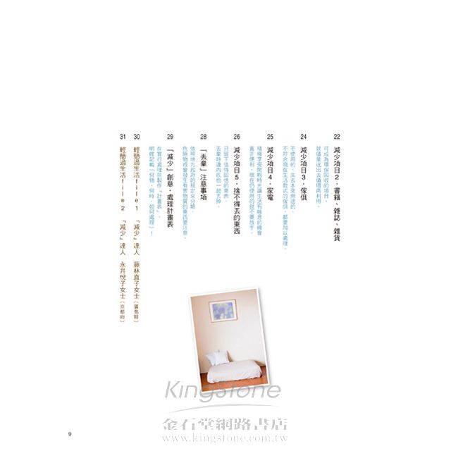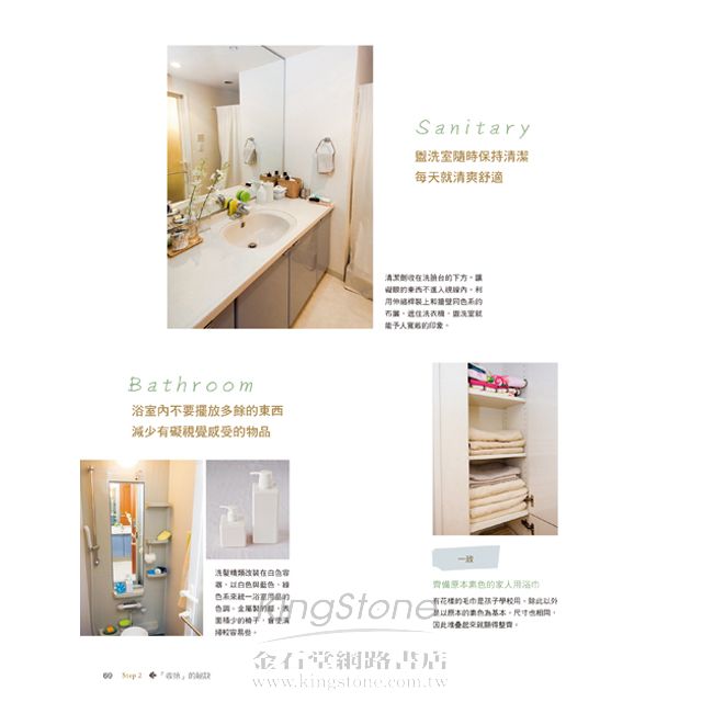 (1) 不特別強調收納的技巧,而是教導如何維持整潔舒適生活的概念,例如,如何配色以形成單純的感覺。