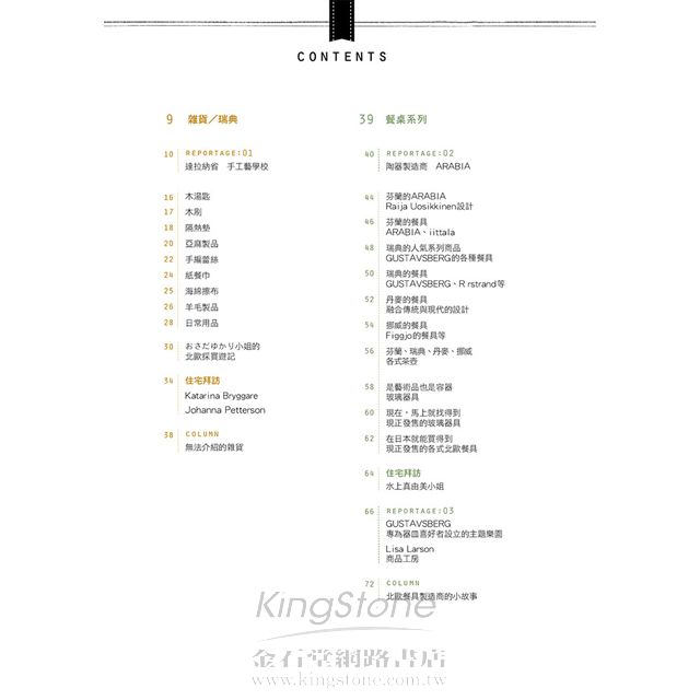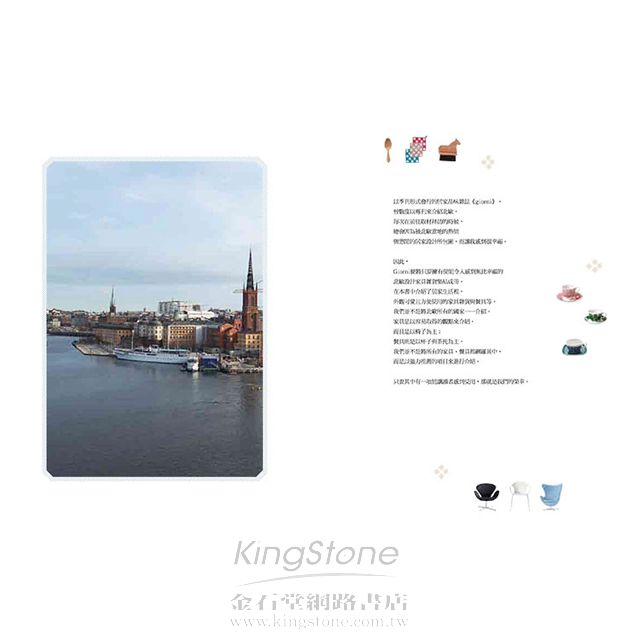 本書為日本生活流行誌季刊《giorni》的北歐主題特集,giorni編輯部以多年來所累積的專業觀點,將一向不以時尚流行為前提,只把居家與生活的設計擺在第一位的北歐設計、北歐居家家飾、雜貨、餐具等相關情報,藉由本書的內容介紹給讀者,其中包含有丹麥的設計款椅子與照明、瑞典的輕熟路線可愛雜貨與北歐(芬蘭與瑞典)的各種餐具,並且收錄了家具工坊、手工藝學校、阿拉比亞工坊(ARABIA)、莉莎.拉森(Lisa Larson)工坊等採訪報導,同時還帶領讀者參觀北歐的民家,讓人藉由閱讀就能感受到正統的北歐設計風情。