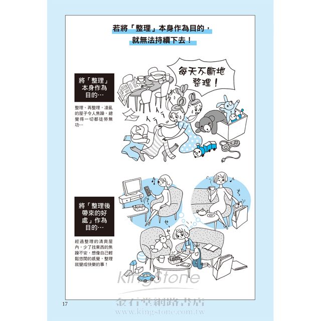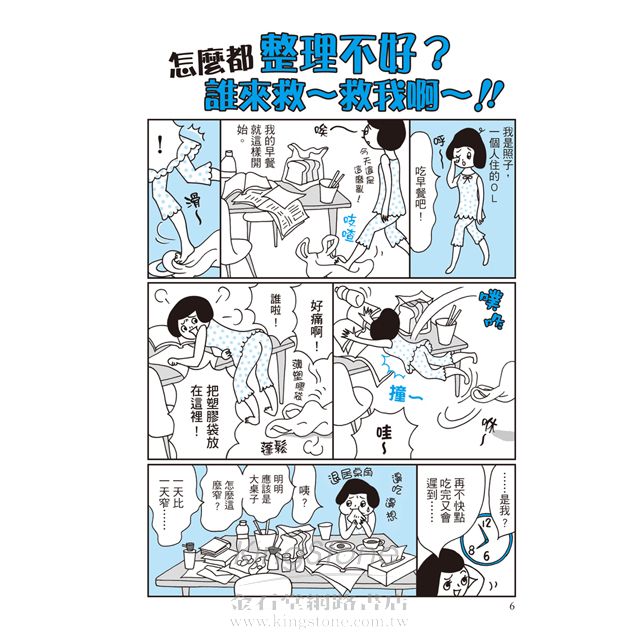 本書收錄客廳、廚房、臥室、抽屜、玄關等,各處的整理法。只要擁有這一本,就能將家中的每個角落都收拾的乾乾淨淨。容易失去耐心、越整理越煩躁的您也不用擔心!以圖文漫畫的表現方式,定能讓您像閱讀漫畫一樣輕鬆並繼續執行。