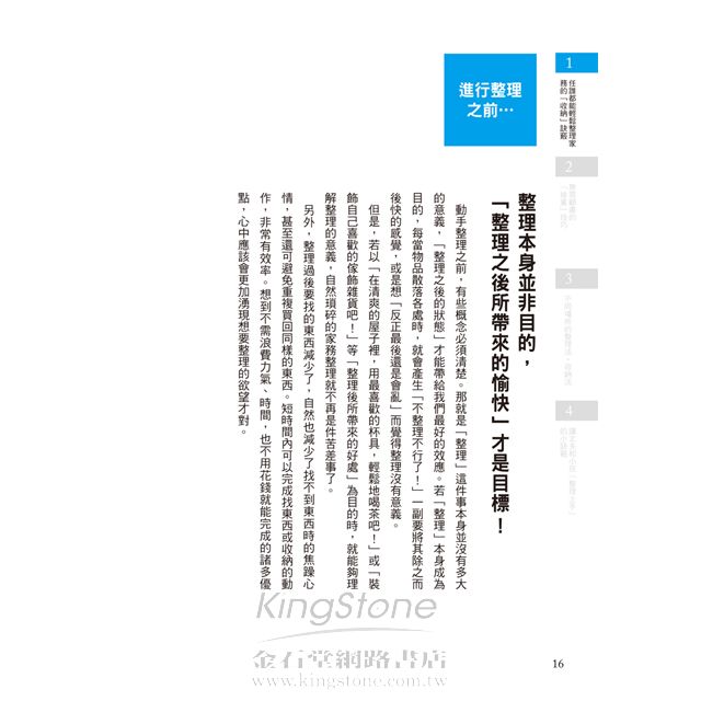 整理上手的6大提示...22/何謂符合自己的整理滿足度?...24