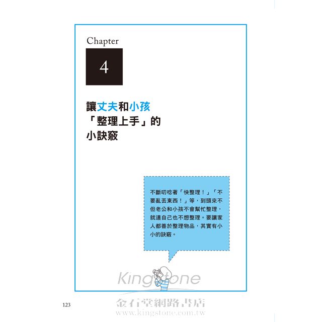 家裡總是亂糟糟的您,是不是總是遇到上述問題、萬年卡關呢?本書介紹了許多簡單又好用的整理收納小撇步,只要依樣畫葫蘆,便能改變讓您頭疼已久的髒亂環境!另外,除了自己要學會該如何整理收納之外,也要教導老公和小孩管理好他們自己的領域,才能事半功倍喔!