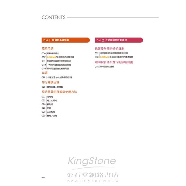 然而要規畫出優良的照明計劃,絕對不能只用單一觀點來進行。無論是照明器具的性能特徵和種類、裝置場所的選擇運用和注意事項等,都是必須事先了解,才能夠設計出一套真正完美的居家照明。