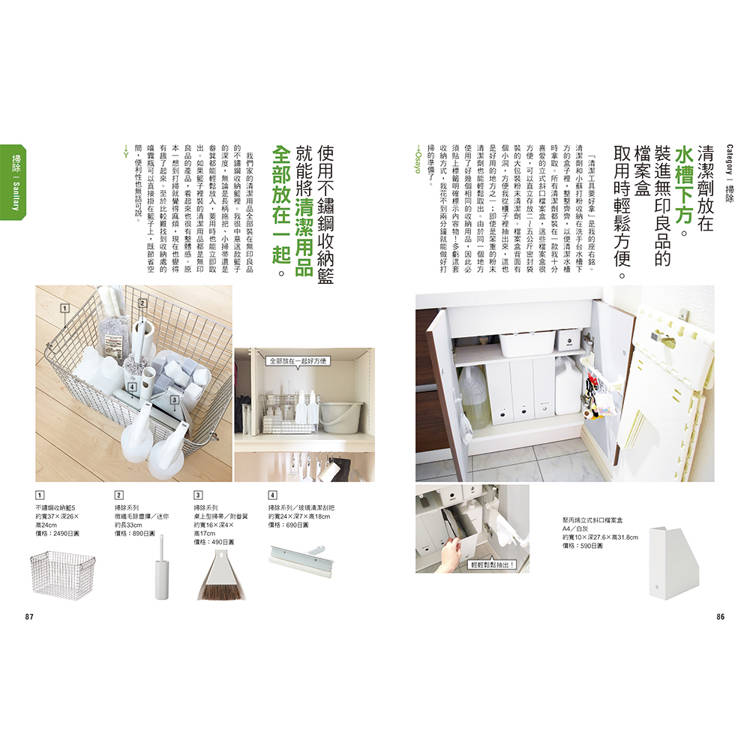 ●收錄一般使用者實踐無印良品式收納心得,好點子多多益善!
