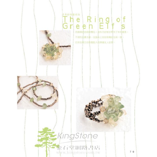 本書包括項鍊、戒指、耳環、胸針、手錶等40餘款璀燦串珠,巧妙結合天然石、半寶石與常見的玻璃珠、金屬線,設計出各式物超所值的精緻飾品。每一款設計都有情境大圖、局部小圖,以及作者親筆繪製的DIY步驟圖,並詳細列出各式珠子的顏色、大小及數量。