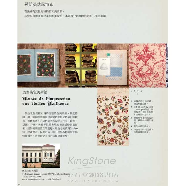 3. 介紹法國染色美術館與博物館資訊,讀者可以從中了解染色與印花的技術與歷史。