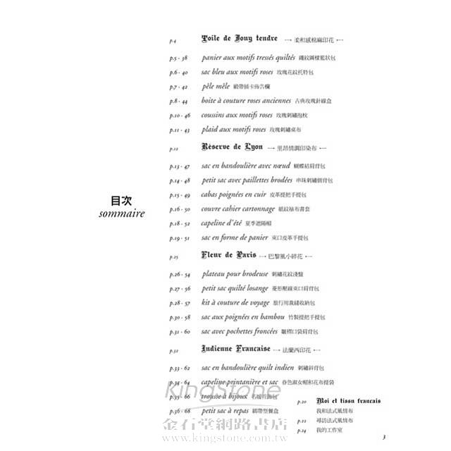 1. 第一本以法國古典印花布為主題的手作書,作者結合時尚設計的元素,每件作品都帶有獨特的法式浪漫風情。