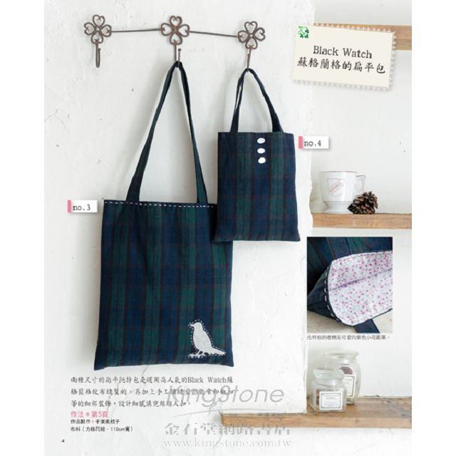 收錄款式很齊全,包包的種類就有拖特包、肩背包、扁平包、提包……等,此外還有各式各樣的生活小物。挑選一個自己喜歡的款式,不論是自己用或是饋贈給親朋好友都很適合!