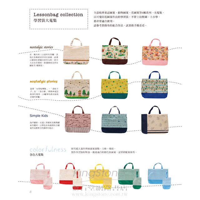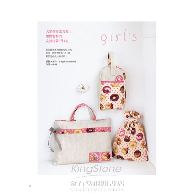 本書所介紹的布雜貨不只是女孩子的專屬,配合男孩子的喜好也有許多適合男孩子風格的包包。不管是小男生還是小女生都可以選擇喜歡的主題與顏色搭配出自己最愛的布雜貨喔!