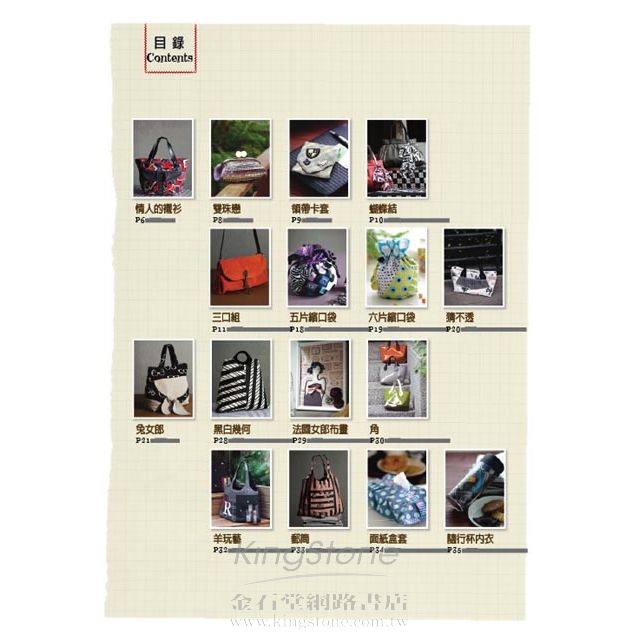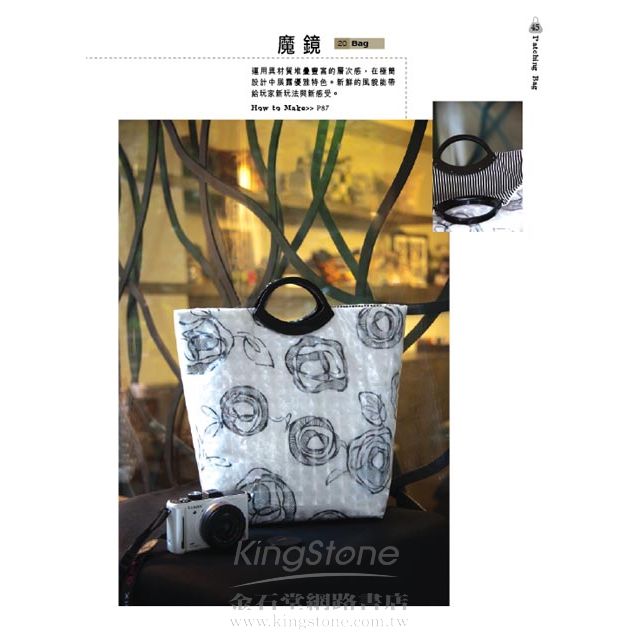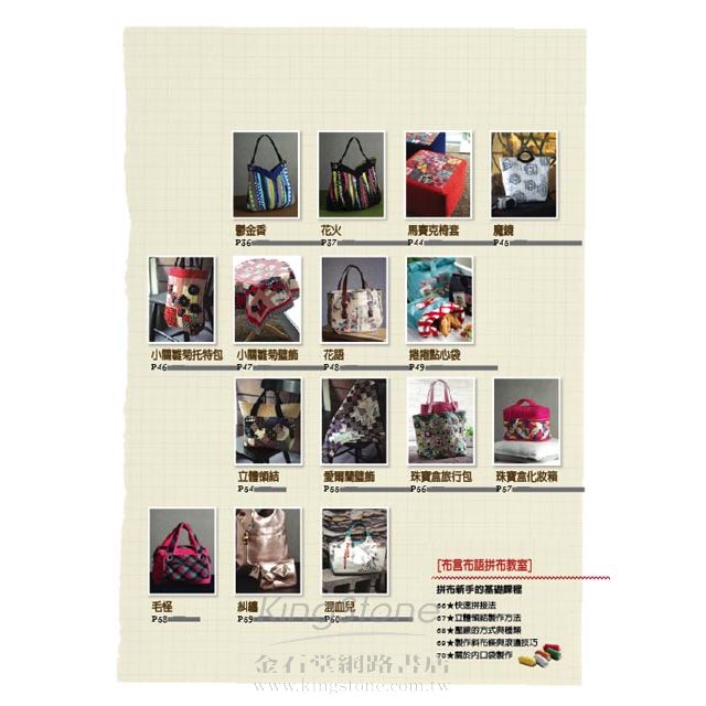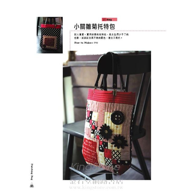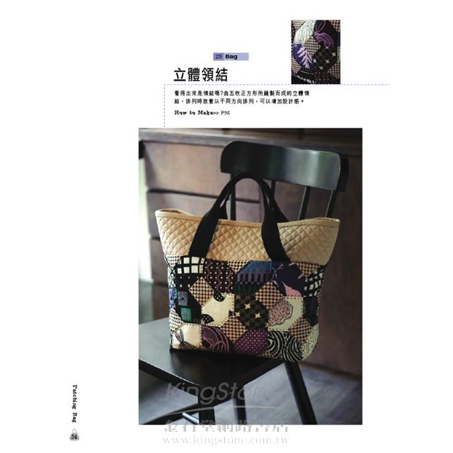 ★創意多元的巧思設計:結合趣味剪接出有稜有角的「角頭包」,以傳統印象拉出線條的「郵筒包」,還有配合布料特色一刀剪成的「手拿包」…,另類又跳脫傳統的拼布思維,讓設計有更多選擇。