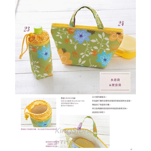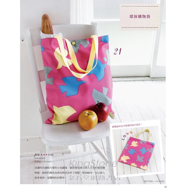 全書收錄46件人氣可愛的手作包&布作小物,包括布包、化妝包、圍巾、居家收納小物、小涼被、抱枕、圍裙等,內附詳細圖解作法,由於樣式簡單,使用縫紉機製作時只需車縫直線,就可以快速完成自己喜愛的包款,非常適合忙碌的上班族,假日在家享受動手製作布作的休閒樂趣。