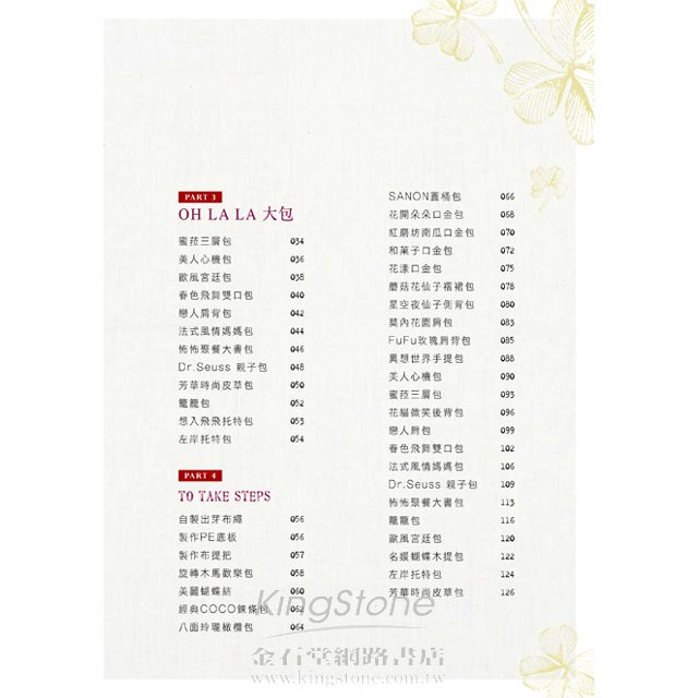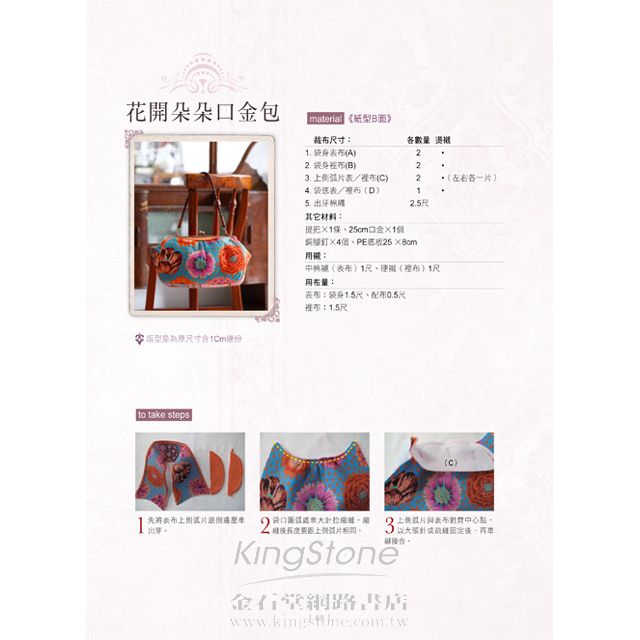 4. 兩大張作品紙型超值收錄16種包款紙型,只要多加練習就能變化出40種包款,讓每個人都有專屬的訂製包!