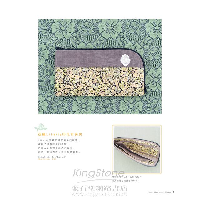 本書收錄28款人氣款的手作錢包:短夾、長夾、立體造型、L型、雙拉鍊、肩背式錢包等,