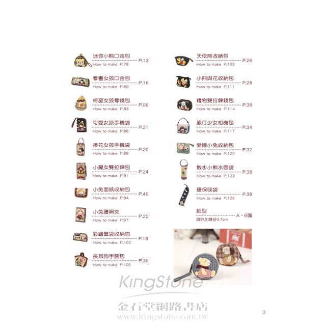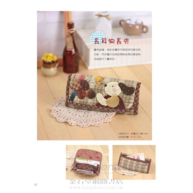 《我的拼布生活小物》是一本以拼布創作為主題的手工藝教學書籍,逗趣可愛的女孩與動物友伴們躍入你的生活,讓人會心一笑。書中提供多款的可愛小物,如圓形零錢包、鑰匙包、拉鍊短夾、長夾、口金包、手機袋、雙拉鍊包、面紙收納包、護照夾、筆袋收納包、手腕包、收納包、相機包、水壺袋、環保筷袋。書中提供了工具與材料、基本技法、作品示範以及原寸紙型,陪著所有喜歡拼布的你創造出貼近生活的可愛小物。如果你也想一同分享這份手作的熱情,現在就立刻加入我們的行列吧!