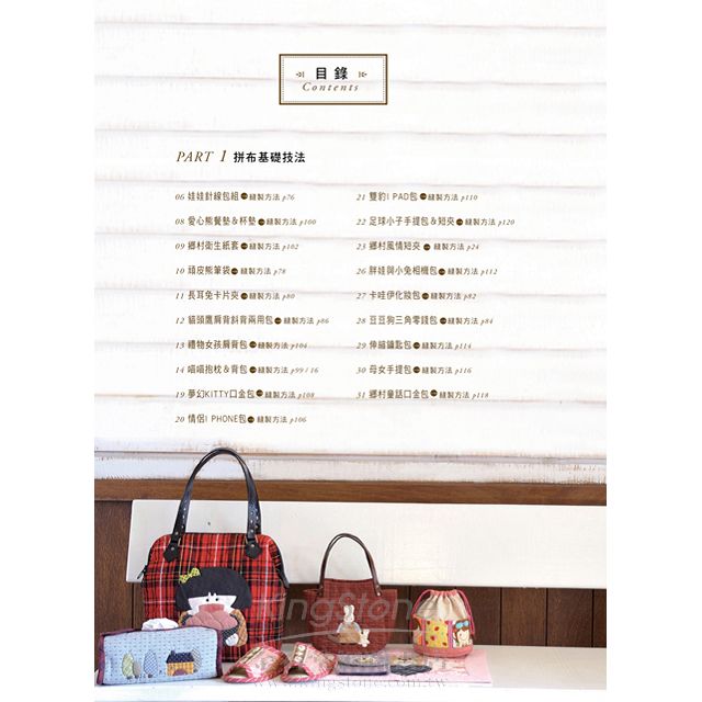 ◆45款融合包與小物的布作,以基礎縫紉結合多素材運用,讓拼布獨具個人魅力。