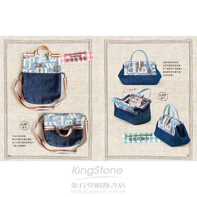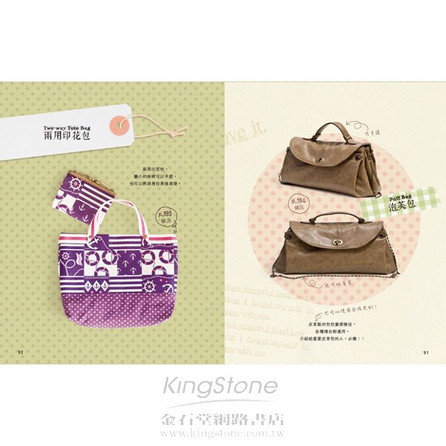 書中依使用包包的大小型態做分類教學,很實用,雖然沒有實際作業的照片,但圖文解釋依然很清楚,很值得蒐藏喔!!