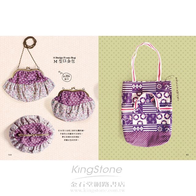 此外,為了符合初學者的程度,在剪裁、縫製包包的設計中加入基本工序,並且於版型檔案中增加「布料排版方式」單元,分享如何在一塊布上面拼好所有布片的小撇步,替初學者節省布料。初學者可以從本書作品學習實用的縫紉技巧,順利完成自己的第一個手作包包。當然,也為進階族群,設計了較實用的版型,也希望書中包包的版型設計,給對裁縫有一定程度、對拼布也得心應手的高手,有更便利的幫助,將版型和自己的縫紉技巧結合,做出更多的作品,大展身手。