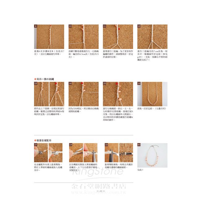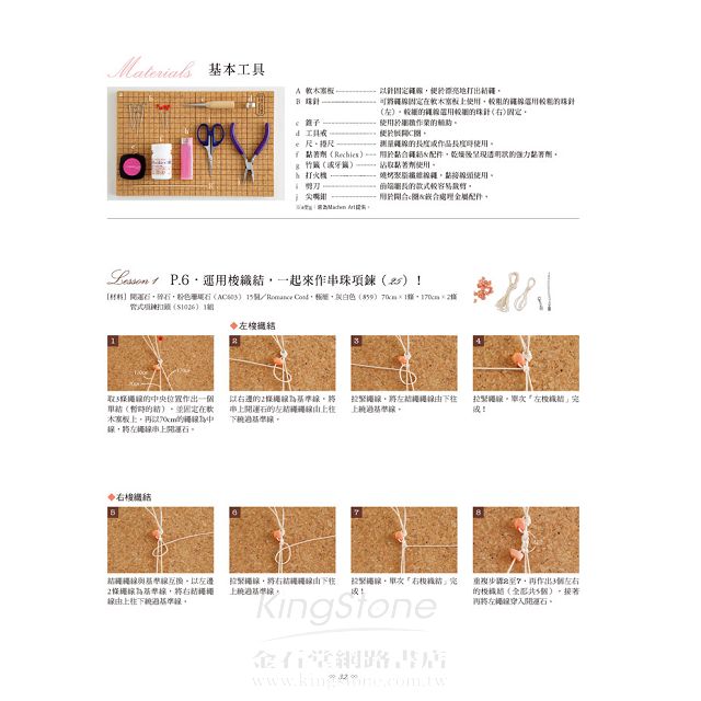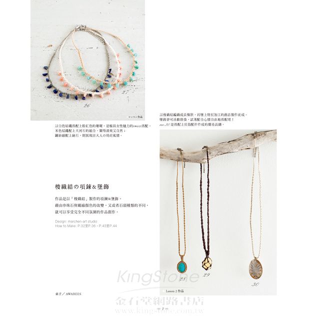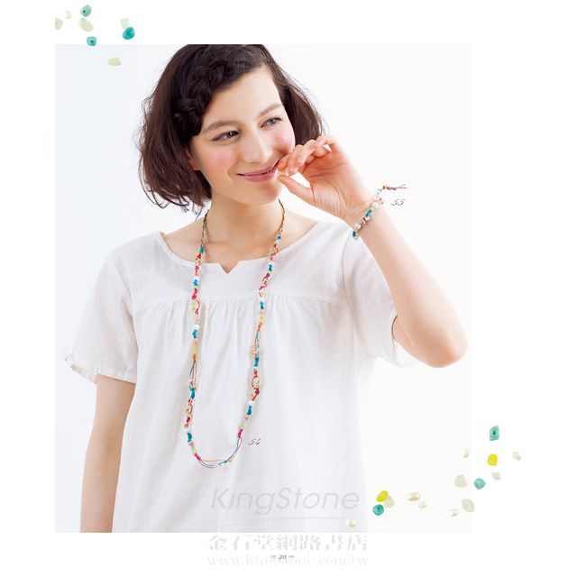 手環、戒指、項鍊、耳環、編織領飾……可以粉嫩、可以繽紛,也可以略帶民族風味&神祕色彩。甜美系女孩就選糖果色的天然石,個性派女孩則試試素材的多元搭配,作出充滿個人風格的亮眼組合;從「平結」開始,以純粹的愉悅心情,簡單地手作,為日常生活帶來更多?樂趣吧!