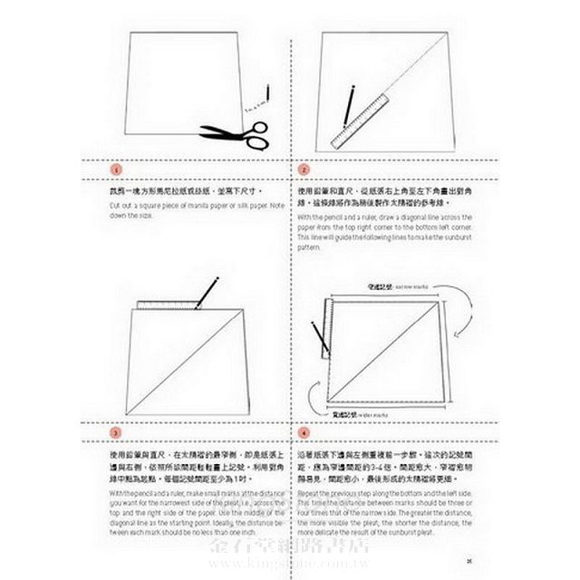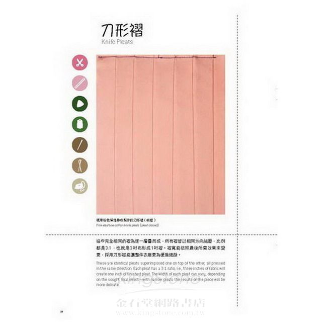 本書收錄在布料上創造出立體設計的二十五項基本褶疊技巧練習步驟與圖例說明。本書簡單易懂的編寫方式,帶讀者親自探索創造出既豐富又複雜的造型,對褶疊藝術充滿熱情的任何人,都能輕鬆將書中介紹的基本褶技巧運用於各式各樣的布料。