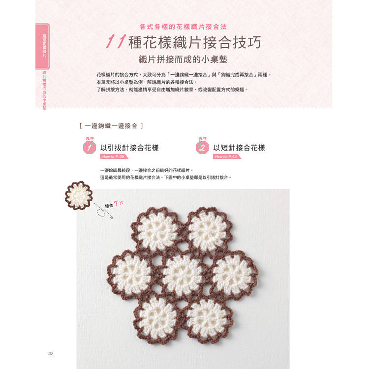 32 11種花樣織片接合技巧 ~織片拼接而成的小桌墊~