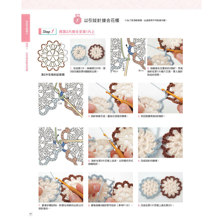 本書對於織片的鉤織方法與拼接技巧都有非常詳盡的解說。