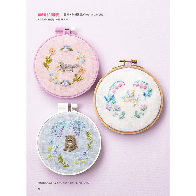 收錄初學者最想知道的刺繡基礎,如裝框、描圖到穿線打結等技巧,搭配詳細的圖文解說,照著圖跟著繡,從此掌握針法不困惑。
