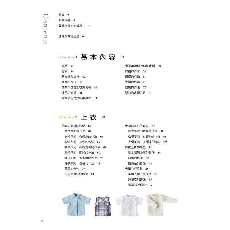 • 百款作品組合: 書中介紹了約 100 款 基本單品,包括上衣、裙子、長褲、連身裙、外套、包包、帽子與襪子等。