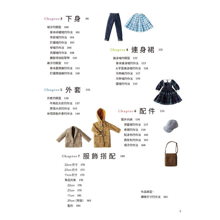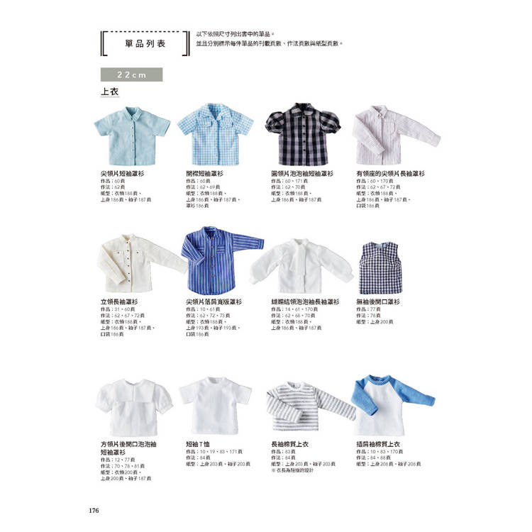 • 五種尺寸全收錄: 專門針對 11cm、20cm、22cm、27cm 以及 29cm(男娃) 等五種常見比例的娃娃提供版型與教學。
