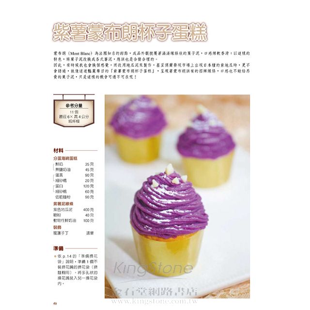 所有食譜,不使用化學膨鬆劑,蛋糕照樣蓬鬆綿軟;不使用色素,成品依然亮眼迷人;不使用香料...內容簡介