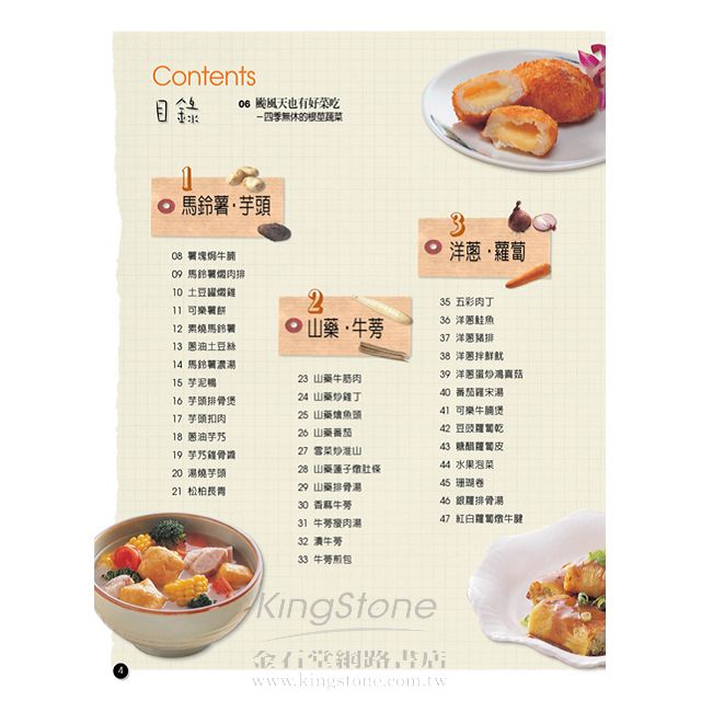 這些蔬菜共同的特色就是四季都能在市場上買到,即使到了颱風季節,其產量和價格也不受影響,方便控制預算。而它們的營養價值比起葉菜類並不遑多讓,例如洋蔥、山藥、南瓜、紅蘿蔔都是非常優良的抗癌食物,香菇對於降低血壓更具有卓越的功效。