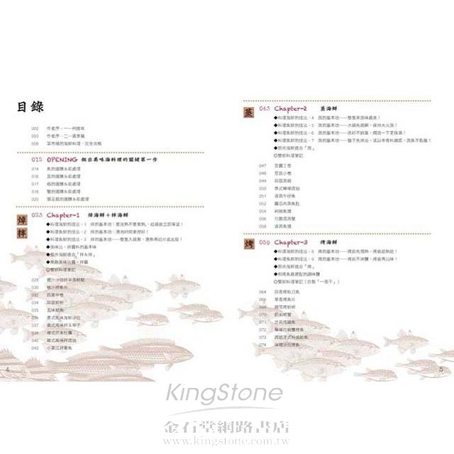 最能烹出海鮮的原汁原味的7大料法,最不會失敗的19種海料理技法,700多張圖片完全公開的大小撇步,讓你輕鬆就能做出80道最好吃的老菜與新味,成為從認識、選購、前處理到入鍋料理的海鮮料理達人!