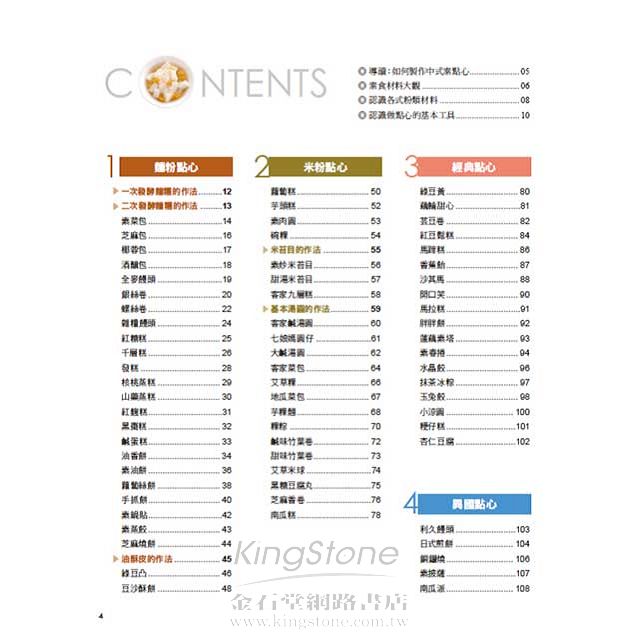 本書同時介紹各種基本粉糰的製作方法,以及餡料的製作祕訣,配以解說詳細的圖片與製作重點的解說,讓讀者可以輕鬆按圖操作,做出美味又口感獨特的素點心。