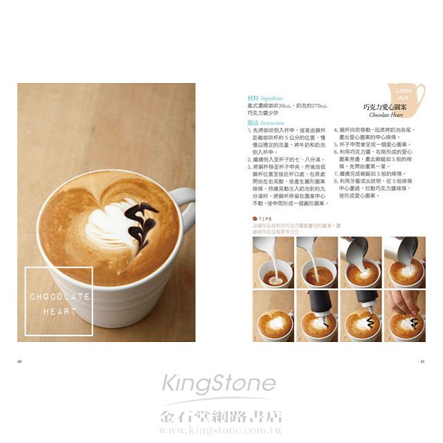 從沖煮一杯好喝的咖啡、各式經典、人氣咖啡的配方公開,到拉花、畫花成功秘訣,以最白話的文字,搭配最清楚的圖片,讓你不是專家也能成功操作,是踏入咖啡世界的第一本書!