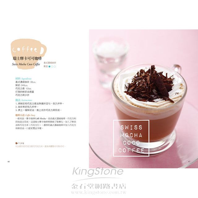 你知道義式濃縮咖啡×馬卡龍、苦味咖啡×巧克力蛋糕、冰咖啡×年輪蛋糕,或者酸味咖啡×奶油蛋糕是絕配嗎?快翻到p.96的咖啡×甜點。