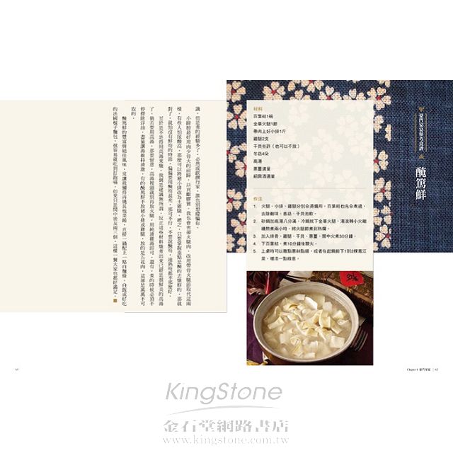 我喜歡讀家庭式的食譜,那是一種經過真正的生活,經過風華歲月體會出來的心得,那樣的食譜才能給讀者一種真正的啟發,而不是按表操練。──王宣一