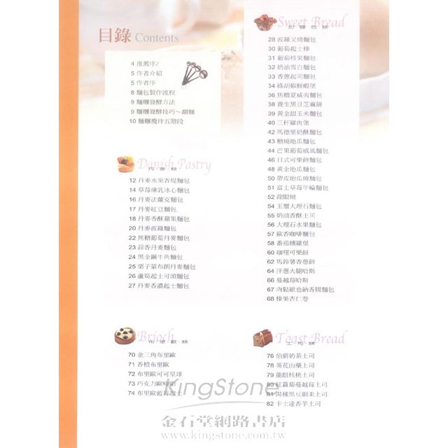 丹麥麵包、甜麵包、布里歐、土司、法國麵包、甜甜圈、歐式調理麵包、自然發酵麵包