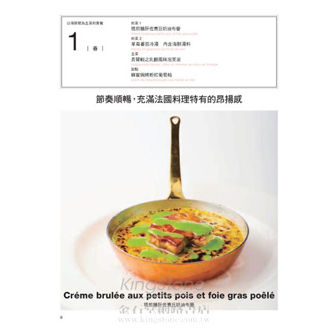 日本知名法國料理廚師熊谷喜八在一次受邀來台指導烹飪技術時,由於台日兩地食材、飲食習慣等面向的差異,而對法國料理的地域性問題產生了全新的體悟。於是他開始努力鑽研改變,期望能將原本予人艱深難懂印象的法國菜重新變化,轉換成較具親和力的無國籍料理,這就是其個人獨特的KIHACHI式料理的由來。本書延續前作《KIHACHI四季料理 特別篇 前菜》,同樣展現出KIHACHI獨特的料理風格。書中按照四季時序,分別介紹88道活用當季食材烹調而成的佳餚,從前菜、主菜到甜點,皆經過細心搭配與調和,呈現出一篇篇完整而協調的美食樂章。