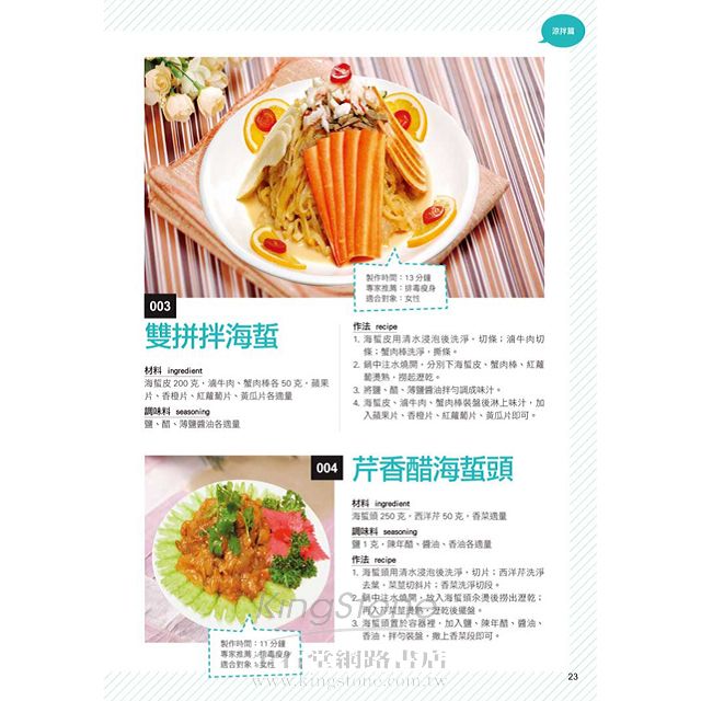 .針對不同體質和需求,提供每道水產海鮮料理的營養功效和適合對象,是吃出均衡和健康的料理百科。
