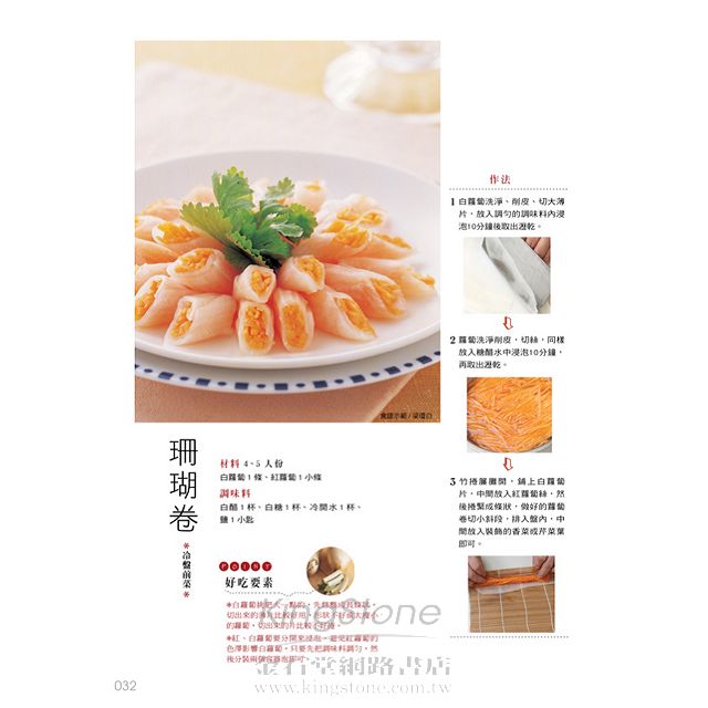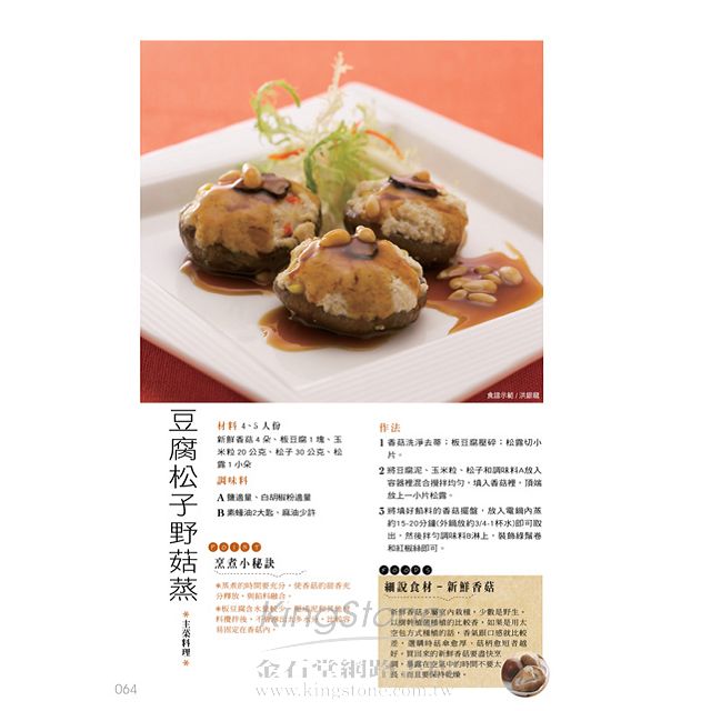 此外還提供各種沾醬、淋醬的DIY,簡易盤飾刀工,教做「豆麵類」、「蒟蒻類」等多種口味的素品製作,還有烹調幫手的使用訣竅,集結大廚智慧的錦囊妙招,讓您手藝升級!