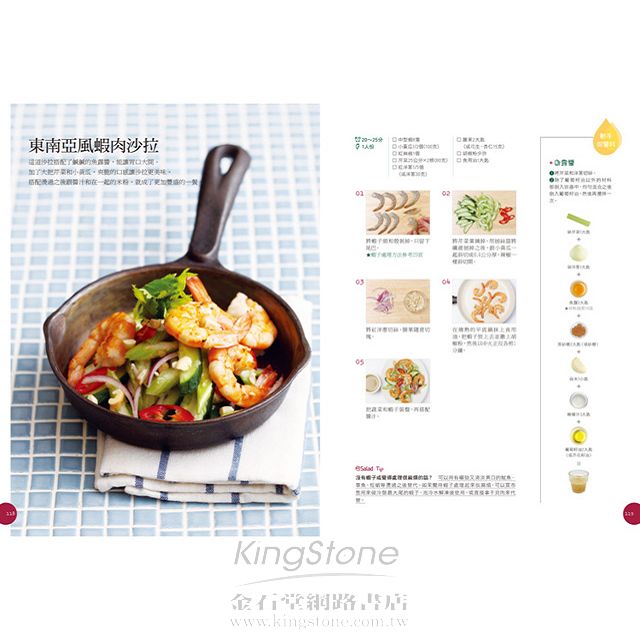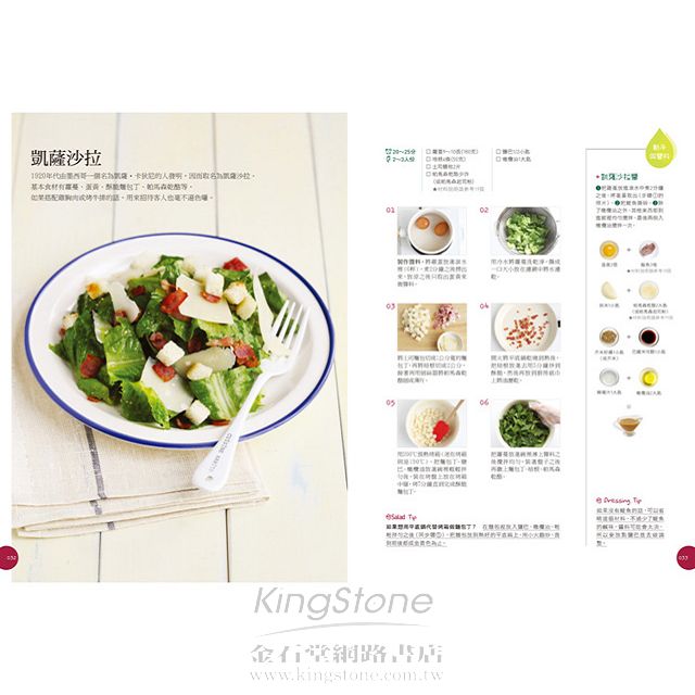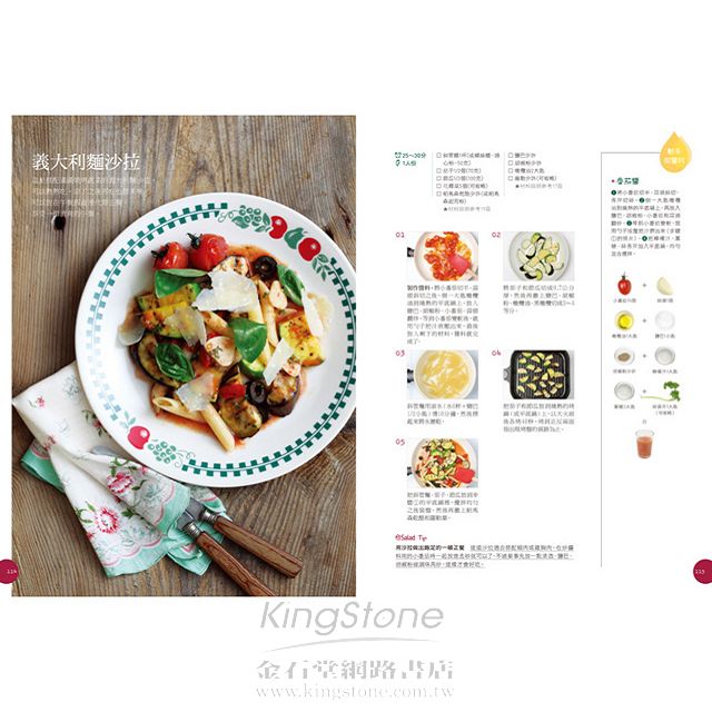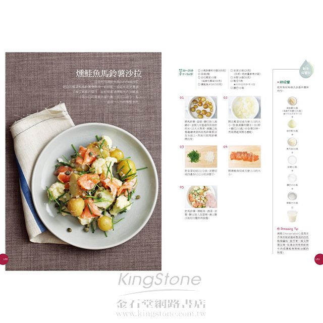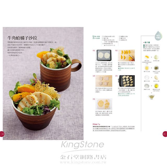書中也依情況別,介紹了不同型式的沙拉食譜和擺盤設計。