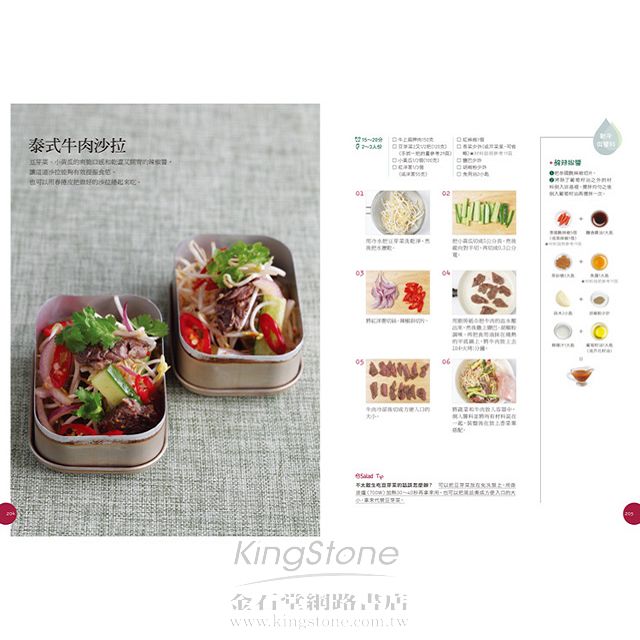 沙拉料理熱量低,準備起來省事又省錢。100道沙拉和100款醬料,想怎麼配、就怎麼配,創造出屬於自己的新口味沙拉,讓你天天都是沙拉享瘦天。