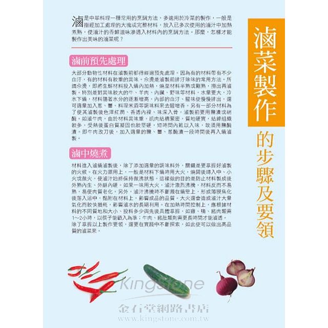 本書一共介紹了蒸、燉煮、煎炸、醃滷、湯、麵、粥等七大類的美味佳餚。除了詳細說明各種美味料理的所需材料與製作流程,也精心收錄了專業大廚提供的料理訣竅,以及食用時要注意的地方。