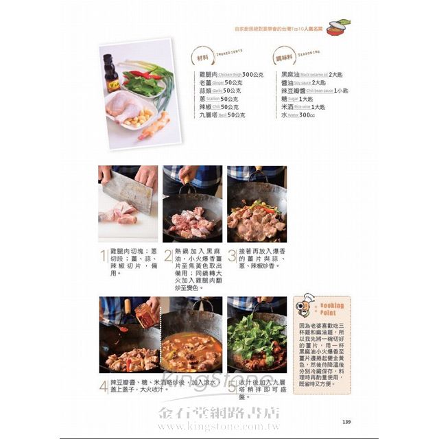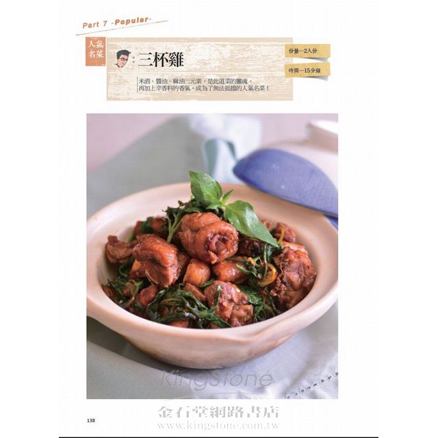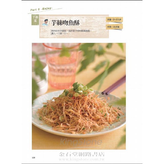 本書依不同的烹調所需分成10大單元,不管是飢餓時超想大口大口享用一頓的蓋飯料理、隨時隨地都可以享受清爽簡單的輕食料理,或一進門花5分鐘就能馬上享用的一餐、一碗或一盤就能營養滿分的飯麵料理、只有兩種食材就能輕鬆順手完成的美味小菜、絕對少不了即使每天做也吃不膩的熱呼呼鍋料理、一定要學會的台灣餐廳必點Top10超人氣名菜,甚至喝酒時與朋友八卦或聊天絕對少不了的下酒菜、周末假日最適合開個Party的的闔家歡樂餐,或偶爾來個不同變化的創意料理,這裡都應有盡有!900張照片Step by Step全圖解,步驟簡單,美味加分,即使是料理新手也可以輕鬆快速上菜!OK!Let’s start!