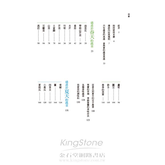 本書彙整了如此累積起來、屬於我個人特有的蔬菜處理方法與烹調技術。這些技術,與其說是我研究出來的,不如說是蔬菜透過其姿態與香味所教導我的。因此,我相信只要您主動親近蔬菜,自然也會學會這些技術。