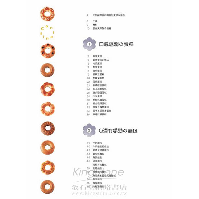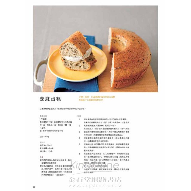 第一章中介紹的酵母蛋糕,其口感鬆軟而濕潤、簡單且多變,以易熟的中空圓模,方能烤出如此的絕妙風味;以酵母作成的蛋糕,僅需使用少量奶油或糖,也能呈現如奶油蛋糕一般的香醇風味,此為其魅力之所在。
